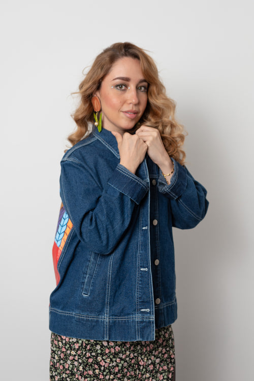 “Aww! Is it so beautiful, love it! Thank you for sharing our Latin American culture through art” Shakira wore a Gue Gue Jacket in an event she was supporting her sons Milan and Sasha in Coral Gables, Miami Florida.