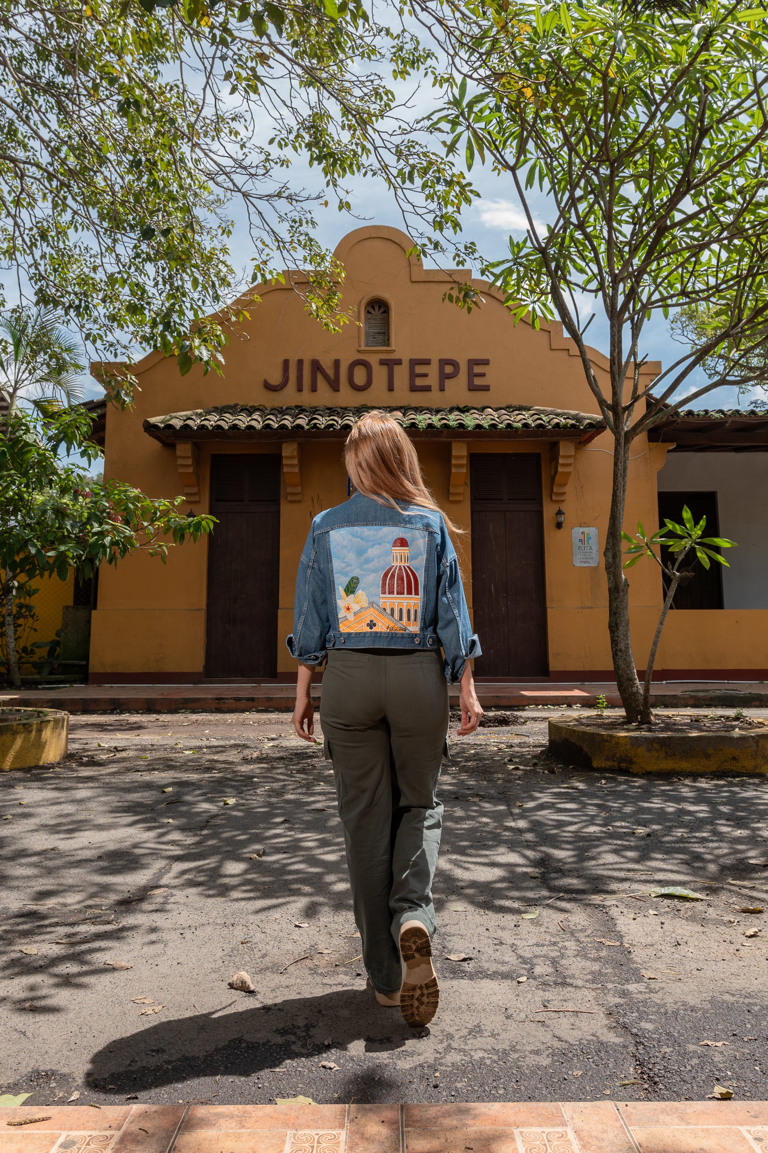 “I feel proud of my roots and my identity. I am taking this piece of wearable art with me, to company me in my adventures around the world, first stop is Chile, South America. This painting represents one of the best places in Nicaragua, Ometepe Island”
